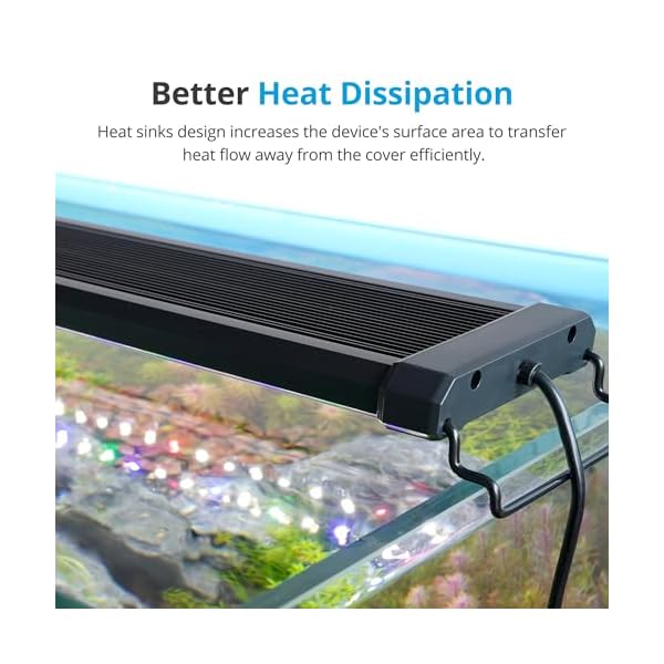 Aluminum alloy shell helps best heat dissipation, and this light is recommended for use over glass or acrylic canopy-covered aquariums