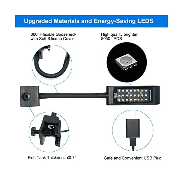 Easy to Use– Firm suction cup is comfortable and essential. Rubber protective cap to prevent collision and damage. Made of a highly transparent and explosion-proof acrylic lampshade, it is durable and easy to clean. With low voltage of 12V, the LED aquarium light is safe and won’t cause any harm to people or fish.