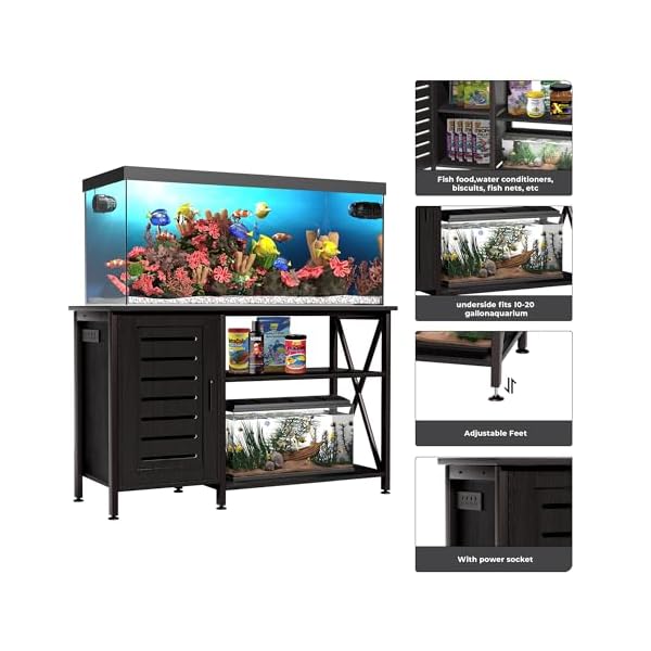 Stylish modern design: Our stand showcases a sleek black modern design that complements various home decor styles. It serves not only as a practical fish tank stand but also as an exquisite home decoration, adding a touch of modern elegance to your living space. Stand dimensions: 52″ L*19.68″ W*31.88″ H TIP: Fish tank not included.