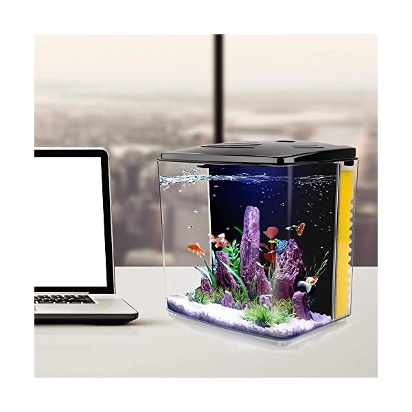 🐠 [Best Small Fish Tank on amazon]: The 1.2 gallon office desktop square small fish tank can raise betta, guppies, angel fish and other ornamental fishes. The fish tank is equipped with led lights and two decorative plastic aquatic plants, and you can also buy other decorations by yourself. What’s more, the small fish tank would be make you more happy and relaxed even in day or at night.