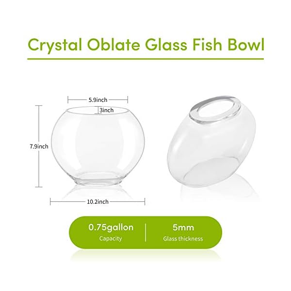 🐠【Not Take Up Much Space】Oblate shape fish bowl, it’s 7.9inch in height, 5.9inch in longer diameter, 3inch in shorter diameter. The glass aquarium fish bowl will not take much space, you can place it on the table, windowsill, shelf or anywhere you can see at first sight