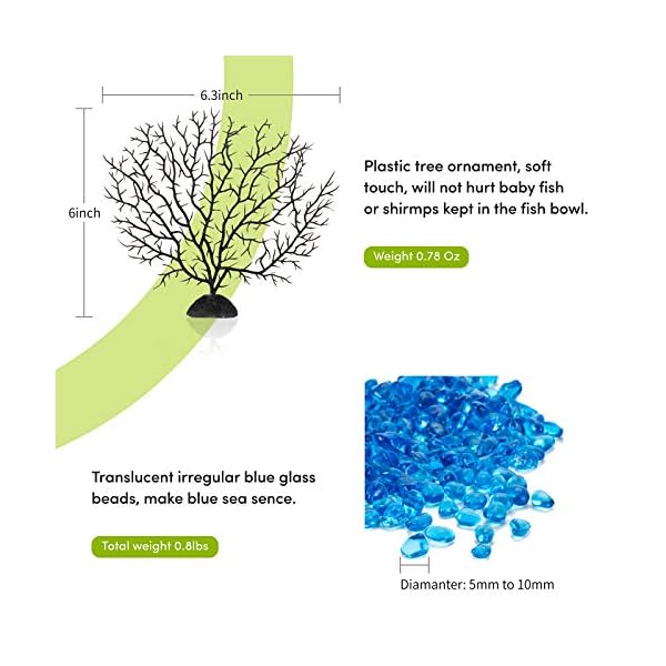 🐠【Novel & Unique Decoration】Perfect for home, dorm, office or holiday decoration. Comes with blue glass beads and plastic tree ornament,add 0.5-0.6gallon water into the mini fish tank, also you can add other small ornaments to create different decoration themes