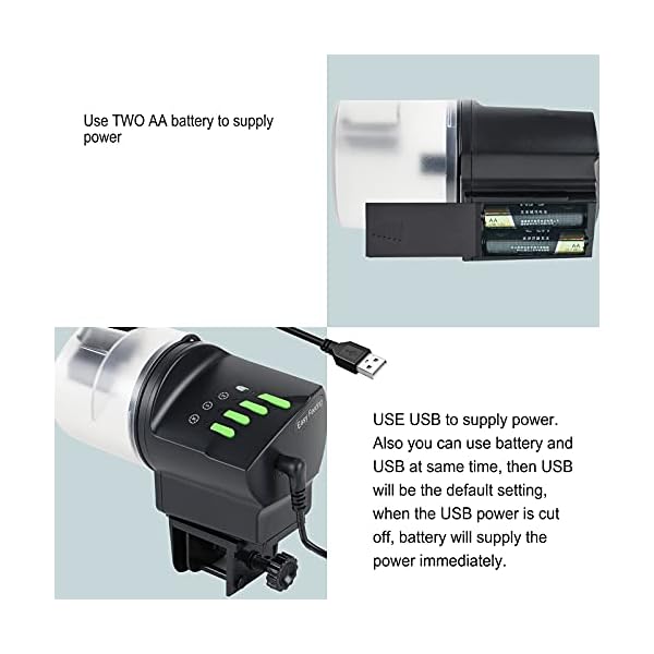 【EASY to ADD FOOD and ADJUST VOLUME】Just pushing the feeding adjusting cap to increase or decrease the feeding volume easily. suitable for most types of food like flakes, crisps, pellets, graduals etc.