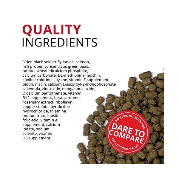 Tropical fish food that contains up to 40%, nutrient-rich Black Soldier Fly Larvae, the first ingredient