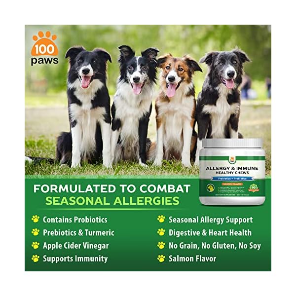ALLERGY RELIEF SUPPORT: Our canine Allergy & Immune soft chews support a normal histamine response for dogs with seasonal and occasional allergies. Our unique formula helps prevent dry skin itching, scratching, bald spots, rashes and hot spots.