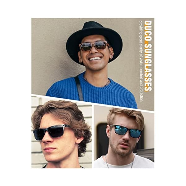 DUCO Square Polarized Sunglasses for Men Light Weight Carbon Fiber UV400 Protection Sun Glasses 8206
