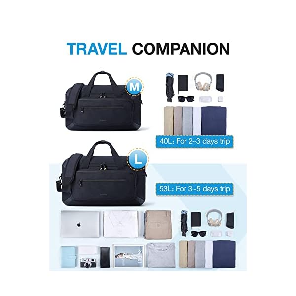BAGSMART Duffle Bag for Men, 53L Large Gym Duffle Travel bag, weekender Overnight bag with Shoe Bag and Multiple Pockets for Travel Essentials, Sports, Traveling(Black)