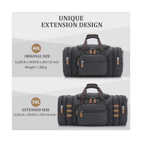 Gonex Canvas Duffle Bag for Travel 50L Expandable Duffel Weekend Overnight Bag men (Dark Gray)