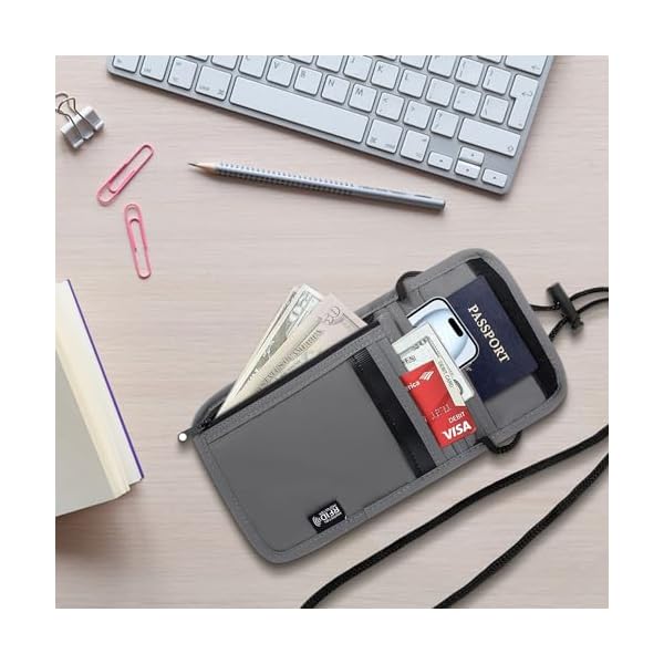 This neck wallet is more than just a storage item. The travel passport holder is fitted with RFID blocking material, serving as your personal shield against unwanted scans and ensuring the security of your e-money and personal information. Despite its security features, this travel document holder is designed for your convenience. It naturally hides under clothing, and the closure allows for quick and easy access to your items during security checks.
