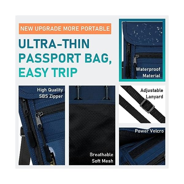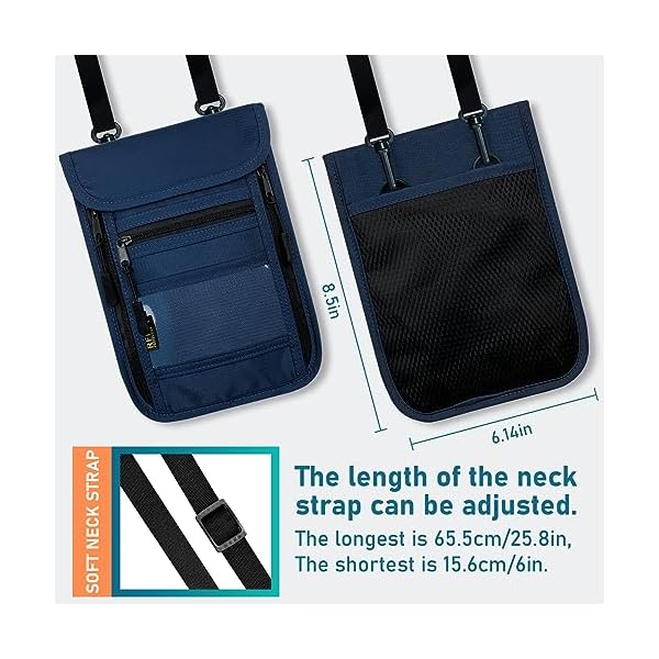 sundee Travel Neck Wallet with Double Zippers, RFID Blocking Passport Holder with Adjustable Neck Strap for Men and Women to Keep Cash, Credit Cards and Travel Documents Safe – Navy Blue