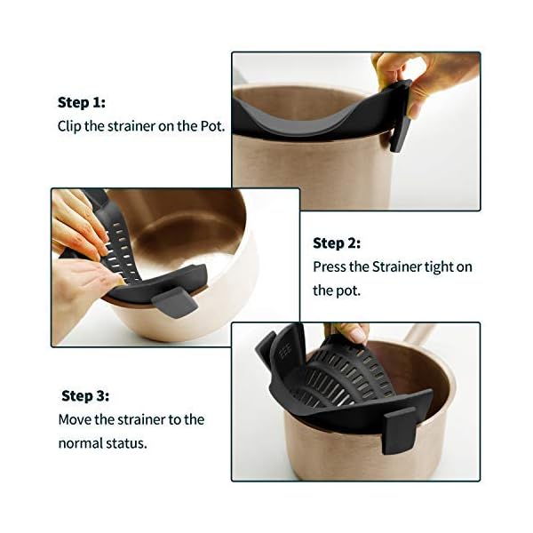SILICONE STRAINER SMART: Eliminates the Transferring Process. Tilt to Strain While the Food Stays in the Pot.